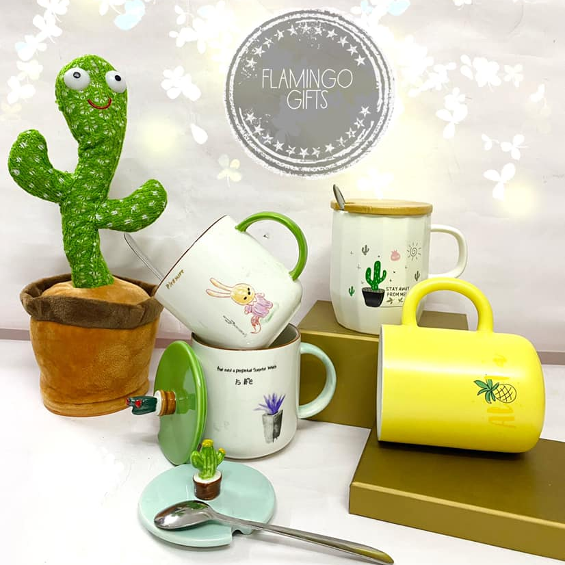 فناجين حجم كبير ملونة (أبيض - أسود - أزرق -بني- بيج- أصفر- أخضر) مع نقشات متنوعة وسمايلات إضافة لرسومات الصبار وميكي ماوس