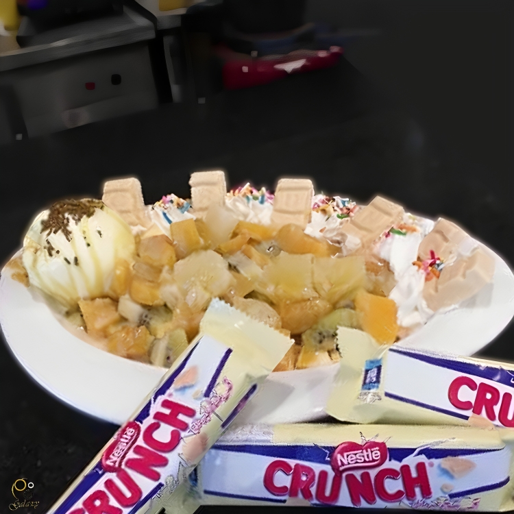 فواكه الموسم ، عسل ، نستله، بسكويت كرانش، بوظة فانيل، وكريمة مخفوقة ..