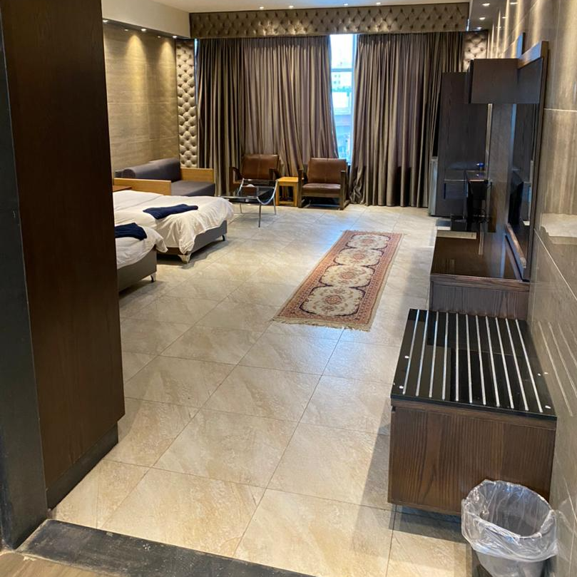 A suite with two identical single beds made of the finest types of wood with excellent linens and colors that suit the decor and design for a distinctive and comfortable stay for you.. And that is until you relax in a beautiful and spacious suite consisting of a luxurious bedroom and a lounge area with comfortable and elegant sofas (single and large) in addition to exciting lighting .. We always provide you with full luxury and needs, as there is air conditioning, a permanent screen, internet, and a bathroom equipped with the latest equipment, with a luxurious design mirror. .. جناح بسريرين مفردين متماثلين مصنوعين من أجود أنواع الخشب مع بياضات ممتازة و ألوان تناسب الديكور و التصميم من أجل إقامة مميزة و مريحة لكم .. و ذلك حتى تسترخوا في جناح جميل و واسع يتكون من غرفة نوم فاخرة ومنطقة صالة مع ارائك مريحة وأنيقة ( مفردة و كبيرة ) بالإضافة إلى إضاءة مثيرة .. نحن دائماً نؤمن لكم كامل الرفاهية والاحتياجات حيث يوجد تكييف و شاشة ونت دائم و حمام مجهز بأحدث الوسائل مع مرآة بتصميم فاخر